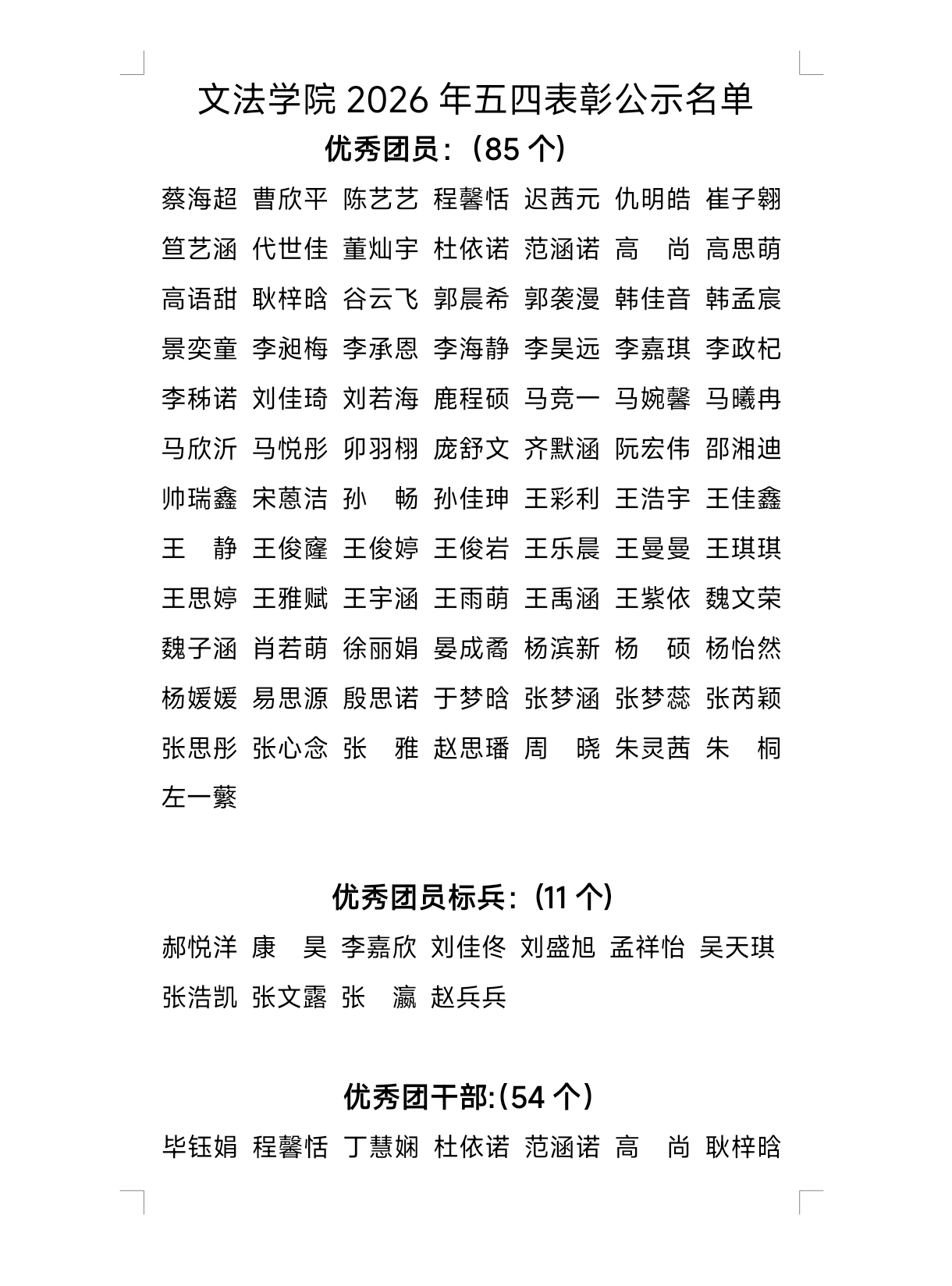 太阳成集团tyc151cc2026年五四表彰公示名单