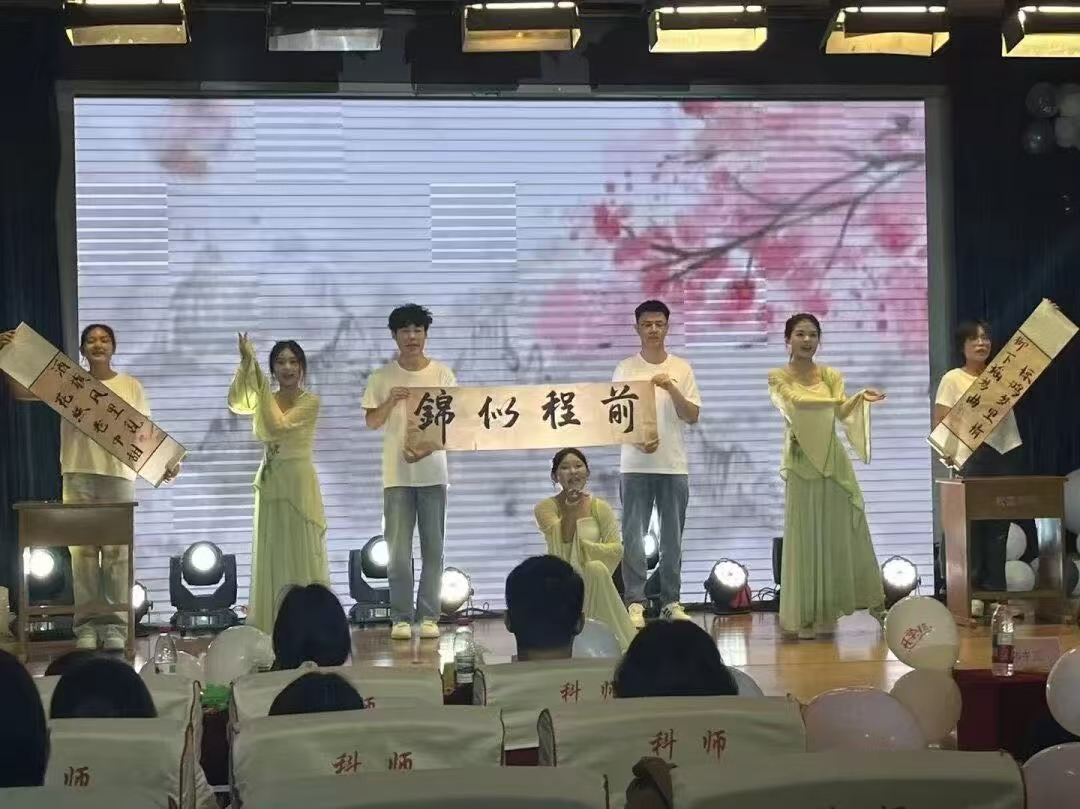 金风携桂香漫溢,青春伴星光启航。2025年9月28日晚七时,太阳成集团tyc151cc“星河璀璨,科师启航”迎新晚会在综合楼二楼报告厅华彩启幕。学院领导、老师与全院学子欢聚一堂,共赴这场融艺术之美、民族之情与红色之魂的青春盛宴。