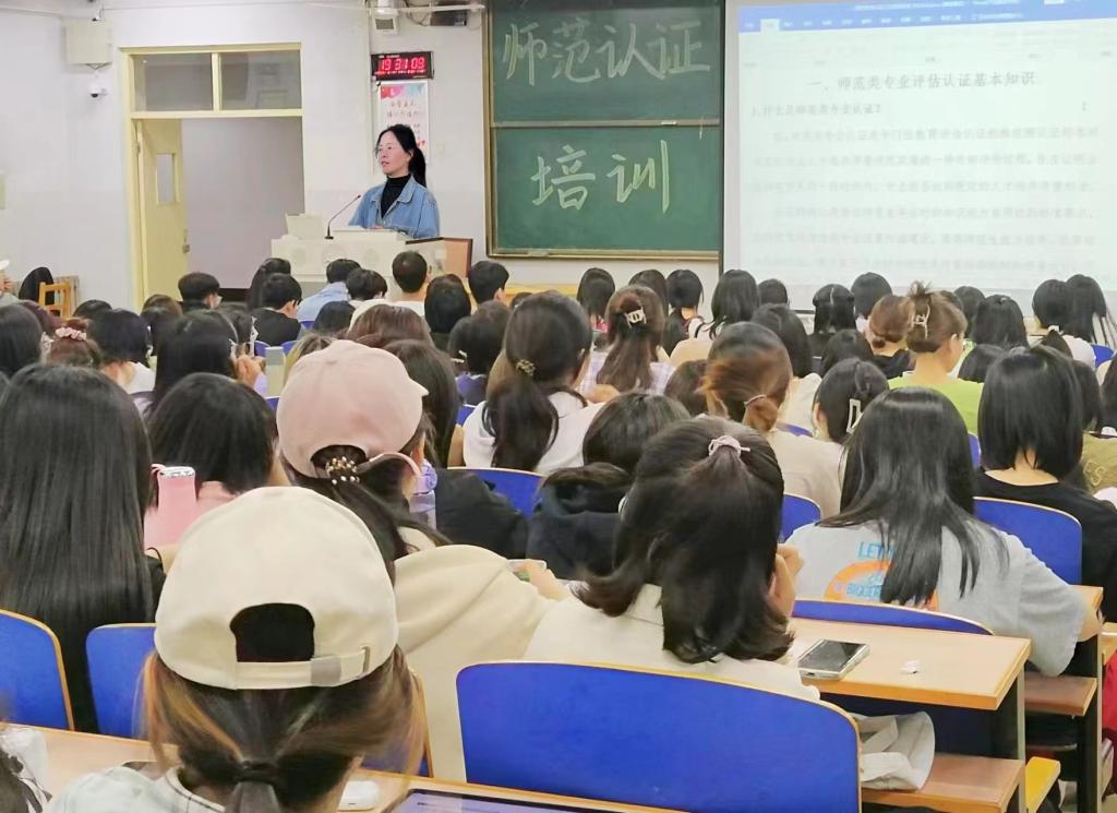 2023年5月11日,太阳成集团tyc151cc以“坚定教育情怀,展现青春风采”为主题,为学院全体师范生开展了四场师范认证集中培训。