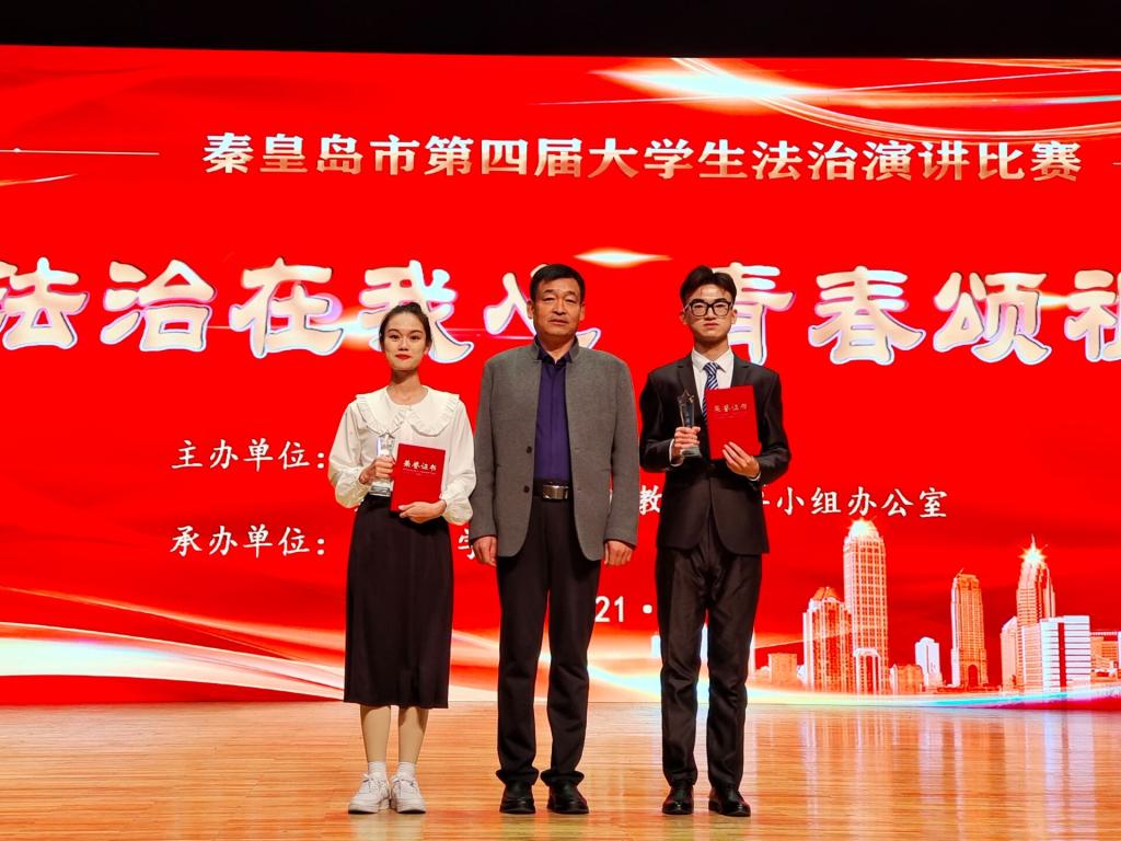 在第八个国家宪法日来临之际,12月3日下午,由秦皇岛市司法局、秦皇岛市法宣办主办的全市第四届大学生法治演讲比赛决赛在燕山大学隆重举行,大赛以“法治在我心,青春颂祖国”为主题,我校太阳成集团tyc151cc阴萌萌、崔双运通过选拔参加了比赛。